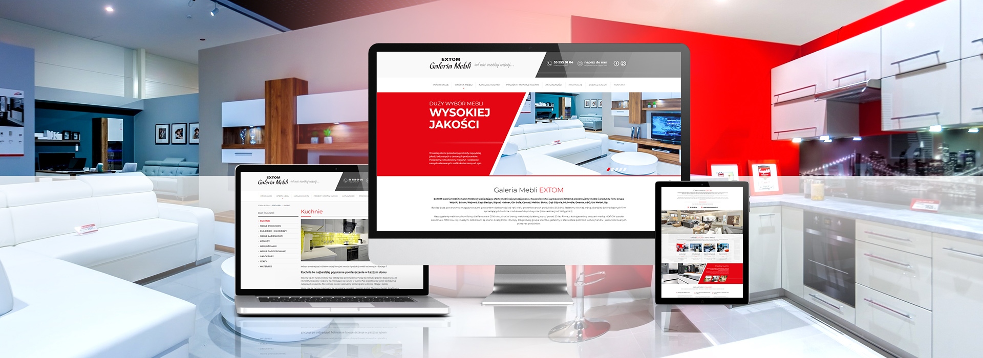 Strona Extom Galeria Mebli to nowoczesna propozycja dla salonów Meblowych z rozbudowaną prezentacją produktów.