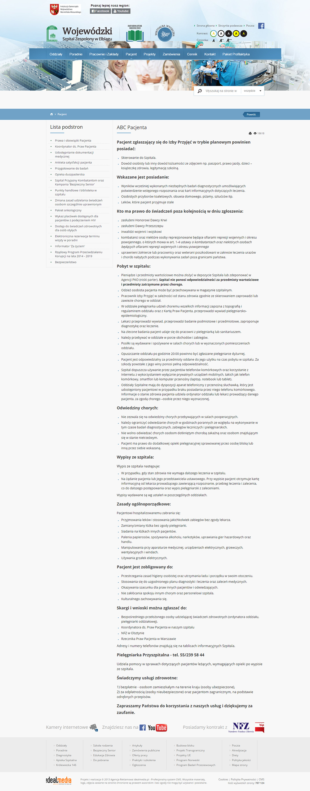 Witryna internetowa szpital.elblag.pl to rozbudowany produkt przygotowany dla Szpitala Wojewódzkiego w Elblągu.
